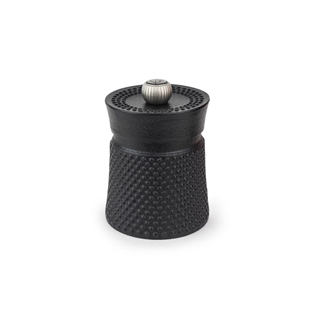 - Pfeffermühle und Salzschälchen aus schwarzem Gusseisen