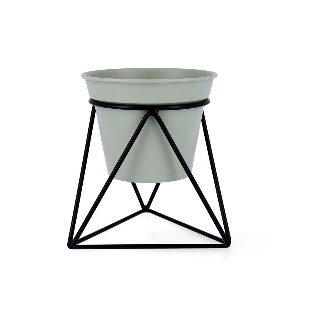 Der Blumentopf mit Ständer Vinthera Moa überzeugt mit seinem modernen geometrischen Design und passt perfekt auf Regale, Fensterbänke oder Beistelltische. Der mattegrüne Topf bildet einen harmonischen Kontrast zum schwarzen Metallgestell – ideal für kleine Pflanzen, Kakteen oder Sukkulenten.