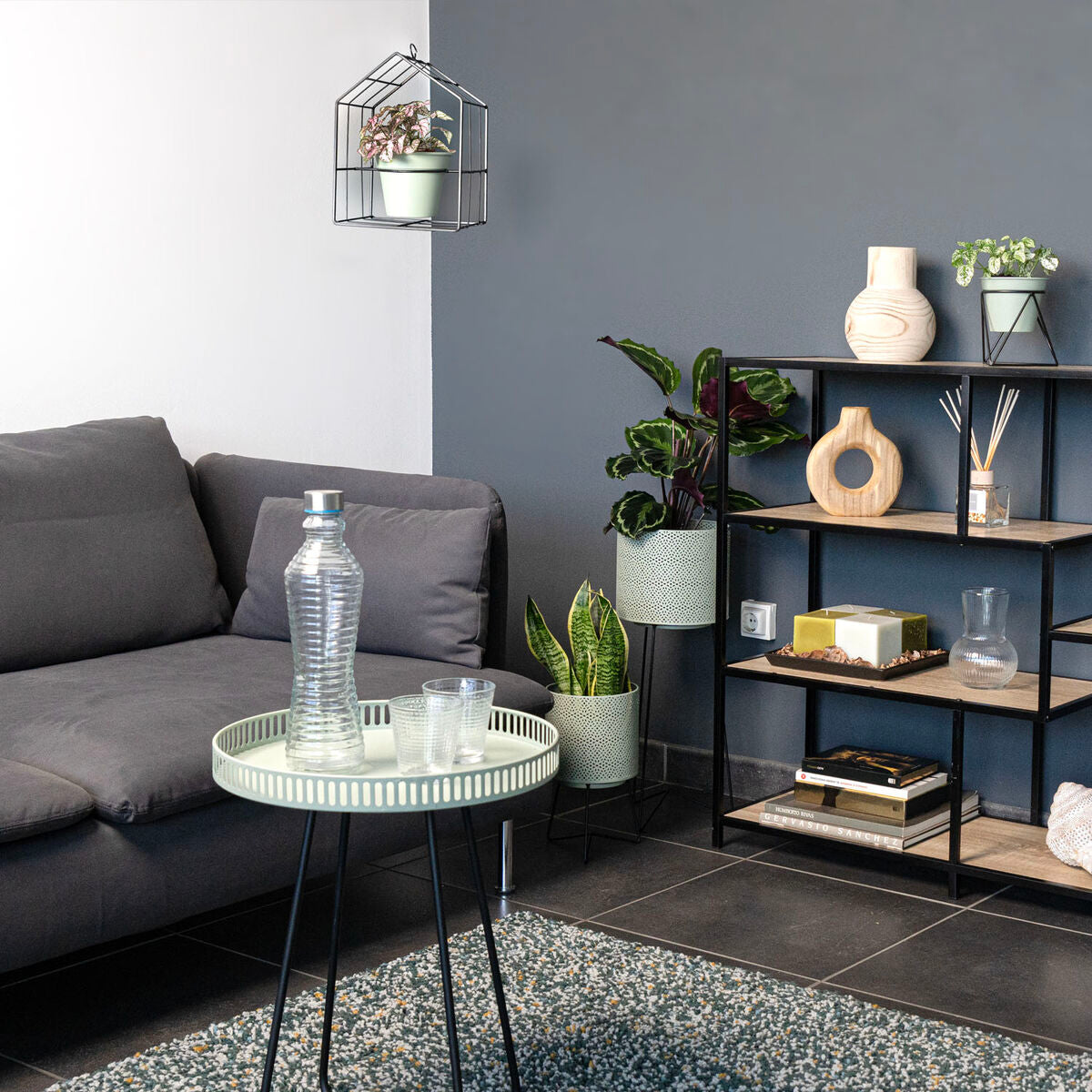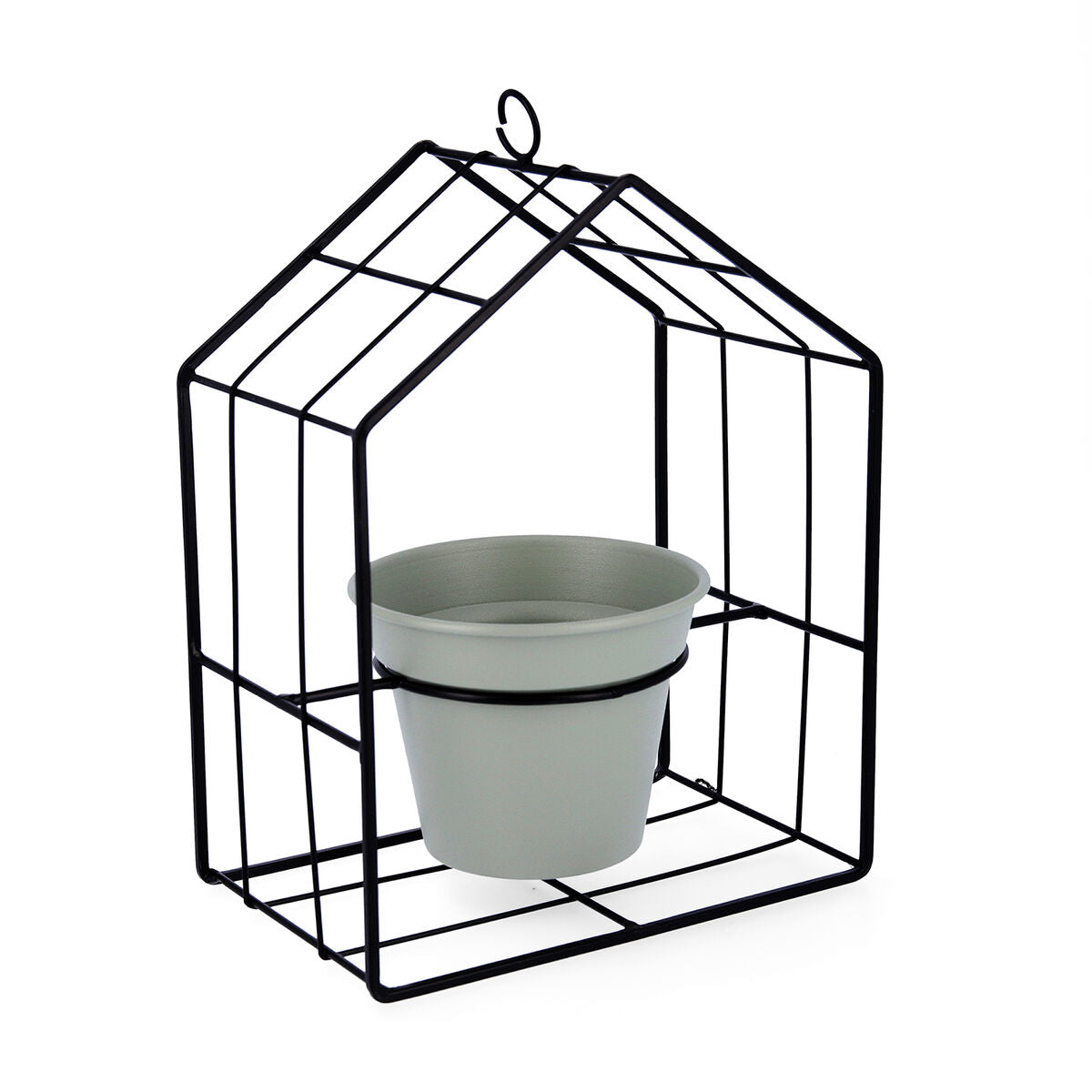 Ein stilvoller Blickfang für Wand oder Fenster – das Hängeblumentopfgestell Vinthera Moa bringt deine Pflanzen charmant zur Geltung. Der filigrane schwarze Metallrahmen in Hausform sorgt für einen modernen Kontrast zum matten, grünen Blumentopf.