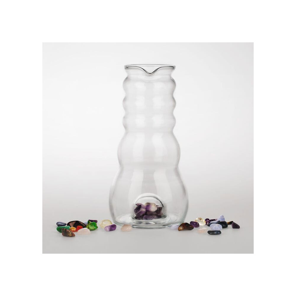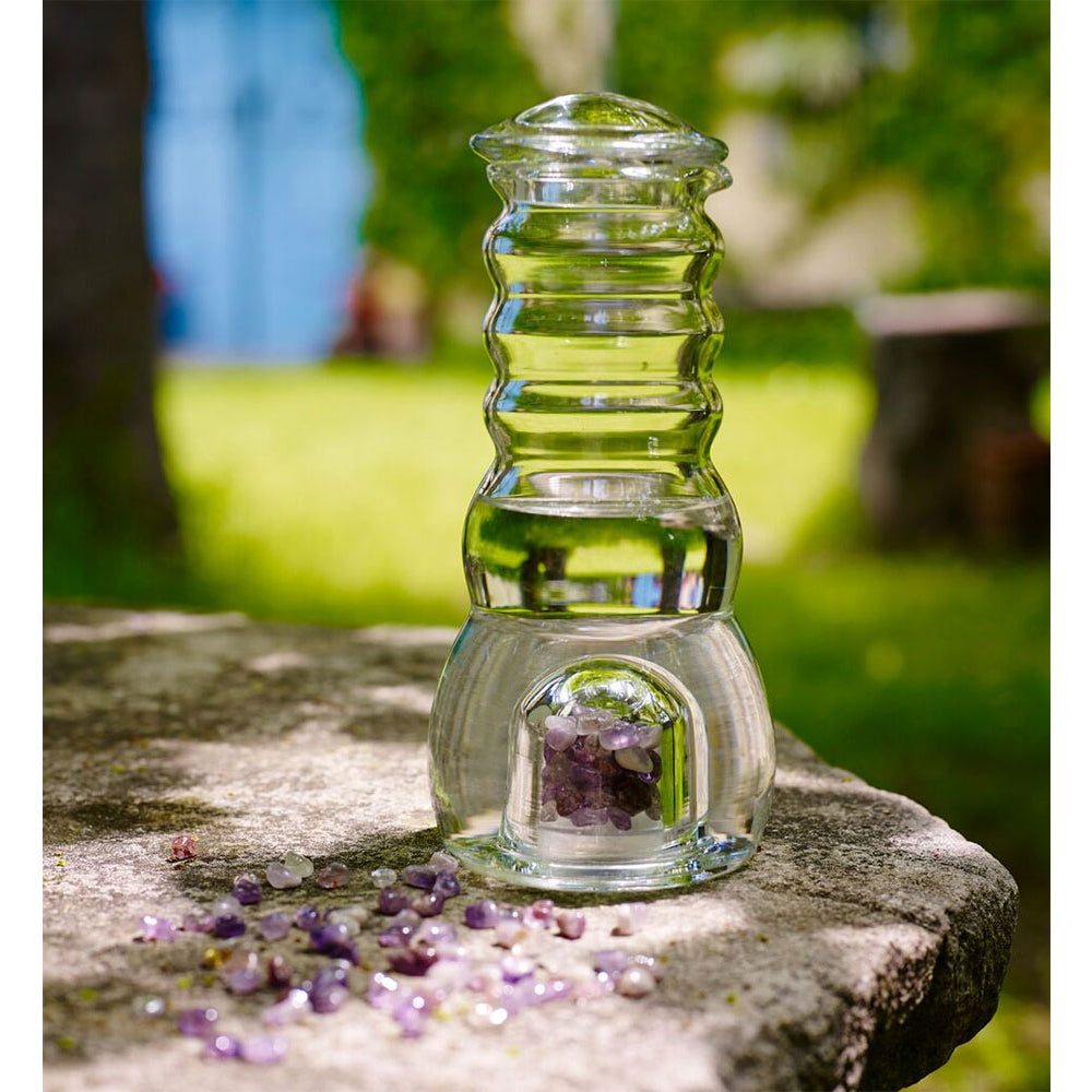 - Vitalisierung: Die spezielle Form und, je nach Variante, die Blume des Lebens oder Edelsteine unterstützen die energetische Aufladung des Wassers.