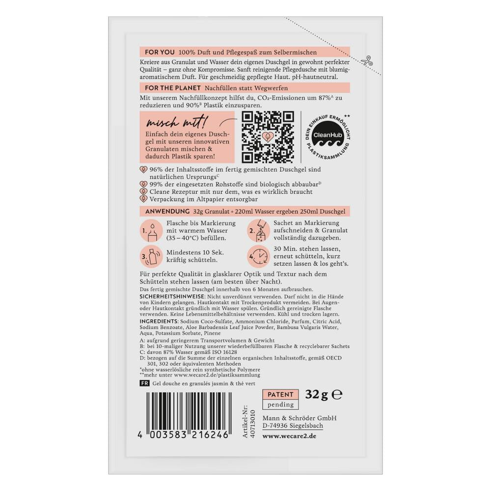 Inhalt: 1 Sachet Duschgel-Granulat (Jasmin & Grüner Tee)