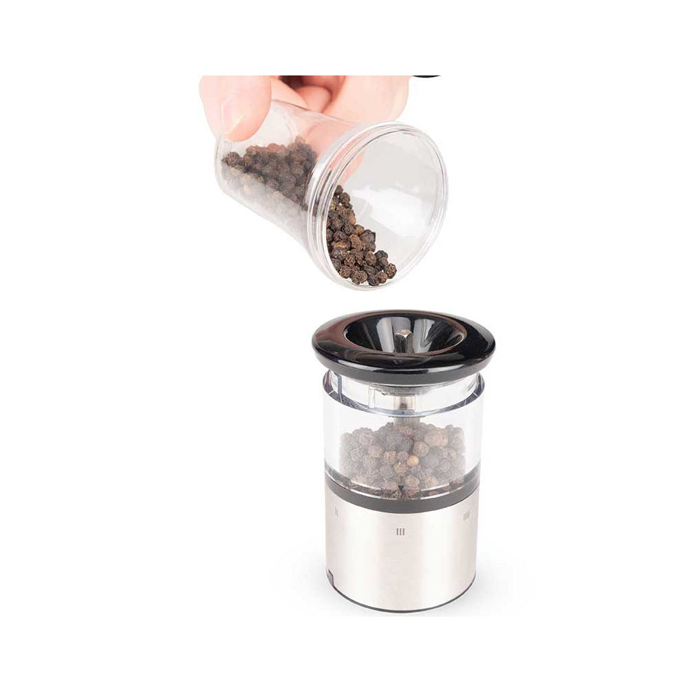 - LED-Beleuchtung: Erleuchtet den Bereich unter der Mühle für präzises Würzen.