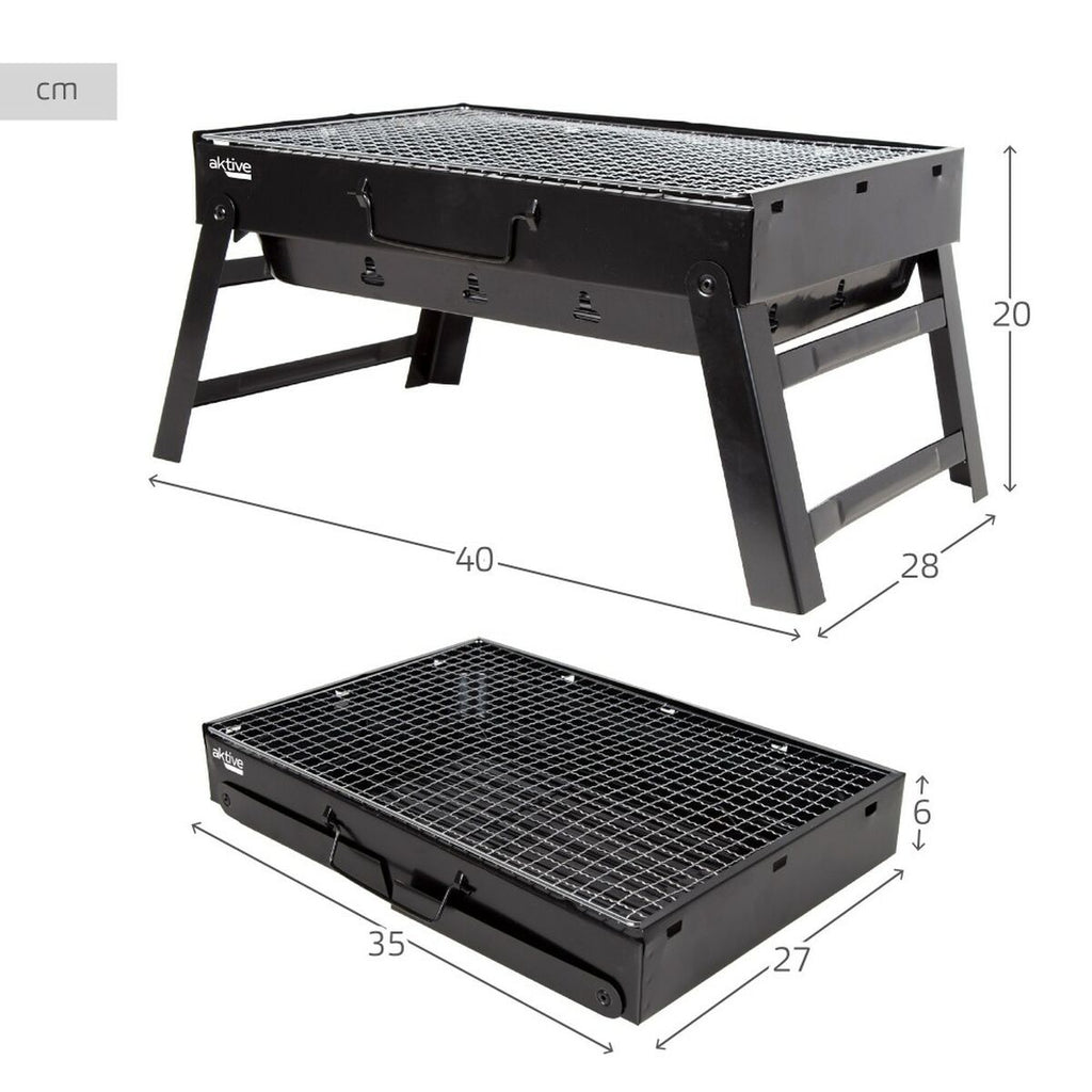 Der Aktive Tragbare Grill ist perfekt für Campingausflüge, Picknicks oder Gartenpartys. Mit seinem kompakten, faltbaren Design lässt sich der Grill einfach transportieren und verstauen. Er besteht aus robustem Stahl, was ihn besonders langlebig und widerstandsfähig macht. Mit den kompakten Massen von 40 x 20 x 28 cm passt er auf kleinere Flächen und ist ideal für unterwegs.