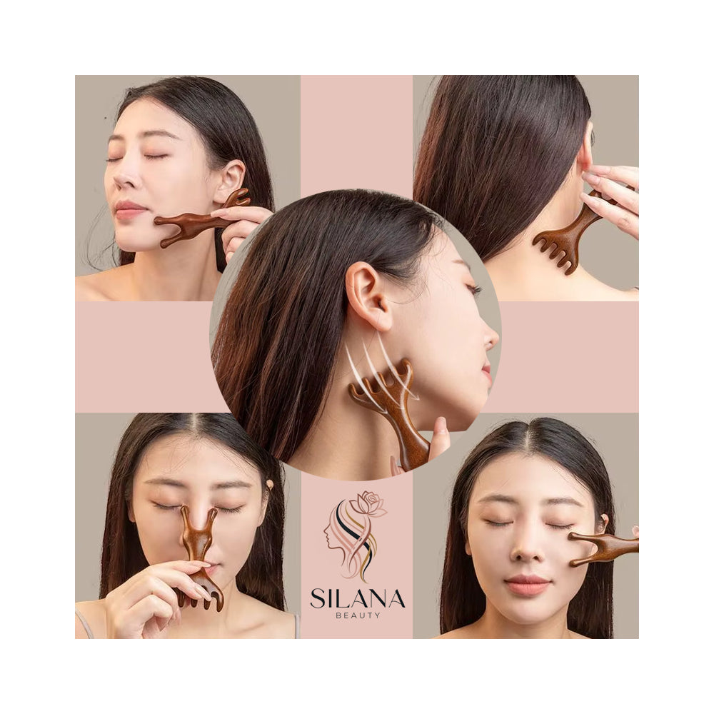 Inspiriert von der Form eines Hirschgeweihs, ist dieses Massagegerät Ihr neues Werkzeug für tägliche Entspannung und Revitalisierung. Gleiten Sie mit dem Guamoa über Gesicht und Kopfhaut, um Verspannungen zu lösen, die Durchblutung zu fördern und Ihr Wohlbefinden zu steigern. Ein Stück Natur für Ihre Self-Care-Routine.