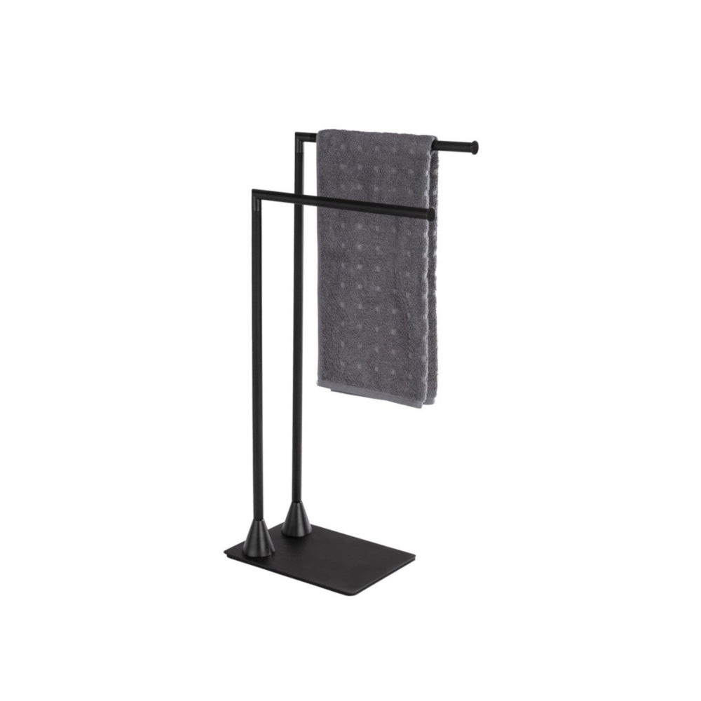 Der Wenko Handtuch- und Kleiderständer Hella, schwarz ist eine elegante und praktische Aufbewahrungslösung für Ihr Badezimmer oder Schlafzimmer. Mit seinem minimalistischen Design aus schwarz lackiertem Stahl in mattem Finish fügt sich der Ständer perfekt in moderne Einrichtungsstile ein und bietet gleichzeitig eine funktionale Möglichkeit, Handtücher und Kleidung ordentlich zu verstauen.