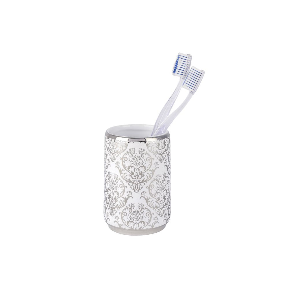 Wenko Keramik Zahnputzbecher Barock, silber/weiss