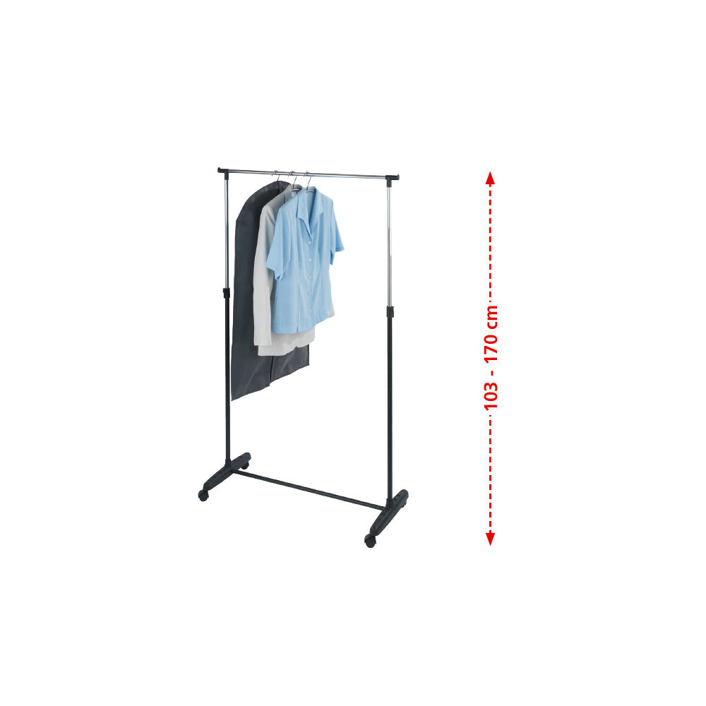 Schluss mit dem Chaos und hallo zu mehr Ordnung! Der Wenko Kleiderständer Mikey ist dein neuer Alltagsheld. Ideal für das Aufbewahren, Lüften und Transportieren deiner Kleidung. Er lässt sich dank der 4 praktischen Rollen kinderleicht bewegen – egal, ob du ihn von Zimmer zu Zimmer schieben oder deine Kleidung an einem anderen Ort aufhängen möchtest.