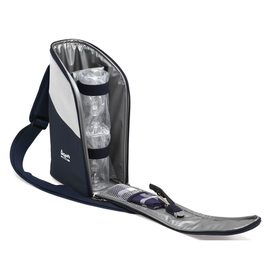 Merkmale: Diese Kühltasche ist ausgestattet mit einem isolierten Innenraum zur Temperaturregulierung. Sie verfügt über ein integriertes Zubehörset, das ideal für Picknicks und Outdoor-Aktivitäten ist. Die Tasche bietet eine kompakte Form mit Platz für Trinkgläser, die sicher in elastischen Halterungen befestigt sind. Eine zusätzliche Netztasche im Inneren sorgt für zusätzlichen Stauraum. Der verstellbare Trageriemen ermöglicht bequemen Transport.