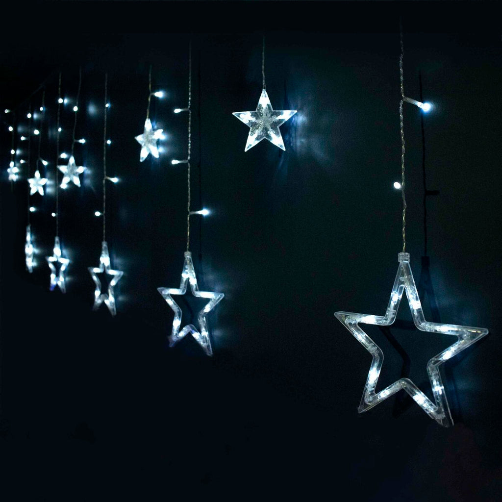 Dieser festliche LED-Lichtvorhang verleiht jedem Raum oder Aussenbereich eine stimmungsvolle Atmosphäre. Mit 138 LED-Lichtern in Form von leuchtenden Sternen eignet sich diese Lichterkette perfekt für Weihnachtsdekorationen oder als dauerhafte Verschönerung für besondere Anlässe. Die 8 verschiedenen Lichtfunktionen bieten eine Vielzahl von Beleuchtungsmöglichkeiten.
