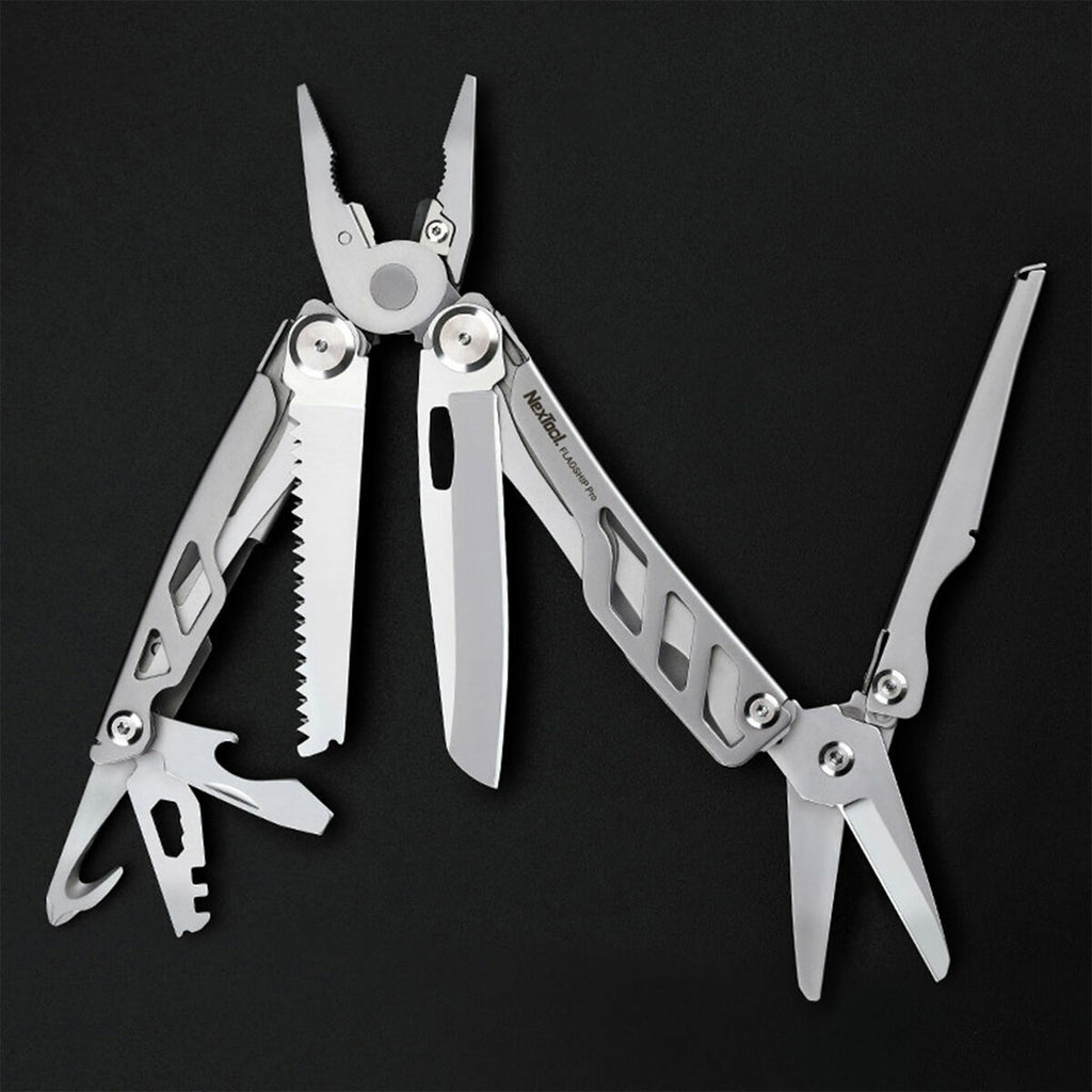 Das Flagship Pro ist das erste Multitool mit einer vollwertigen Schere und bietet 16 Funktionen für Outdoor-Enthusiasten, Heimwerker und Alltagsabenteuer. Die hochwertige Edelstahlverarbeitung sorgt für Langlebigkeit, Rostschutz und Korrosionsbeständigkeit.