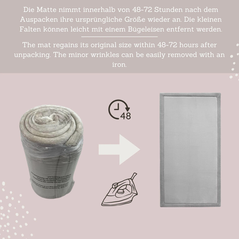 - Korallensamt-Oberfläche: Bietet den weichsten Kontakt für die zarte Babyhaut und sorgt dafür, dass sich Ihr Kind wohlfühlt, während es spielt oder krabbelt.