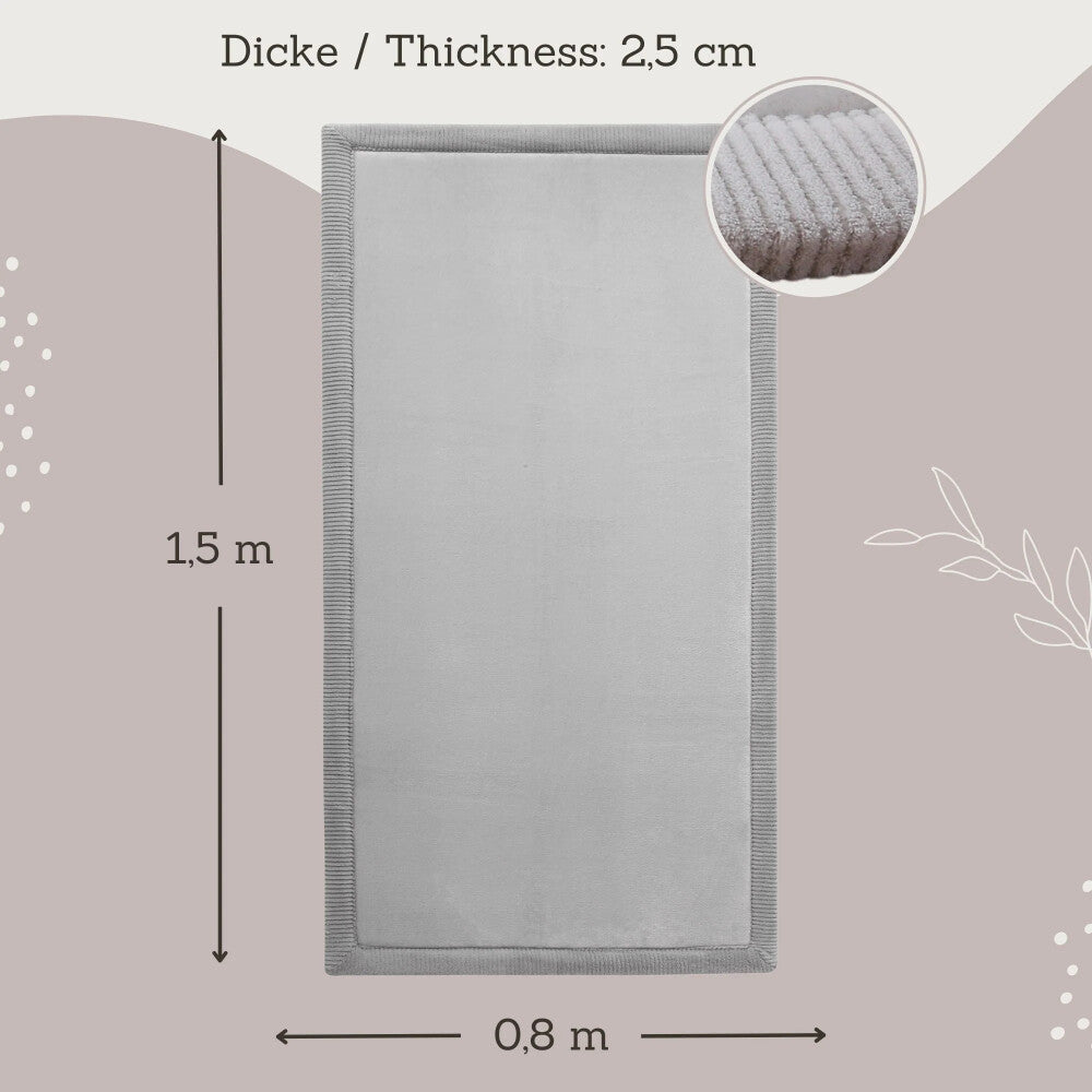 - Mit einer Größe von 150 x 80 cm bietet der Teppich ausreichend Platz für Ihr Baby, um sich frei zu bewegen und zu spielen.