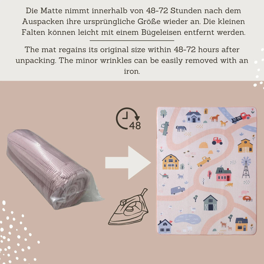 - Rutschfeste Rückseite: Diese sorgt für Sicherheit, indem sie das Verrutschen des Teppichs verhindert und Ihr Baby vor Stürzen schützt.