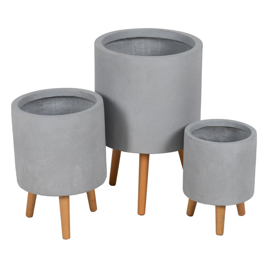 Dieses dreiteilige Blumentopf-Set kombiniert minimalistisches Design mit einem modernen, skandinavischen Look. Die Betonoptik in Grau und Beige harmoniert perfekt mit den natürlichen Holzbeinen und verleiht deinem Zuhause oder Garten eine stilvolle Note.