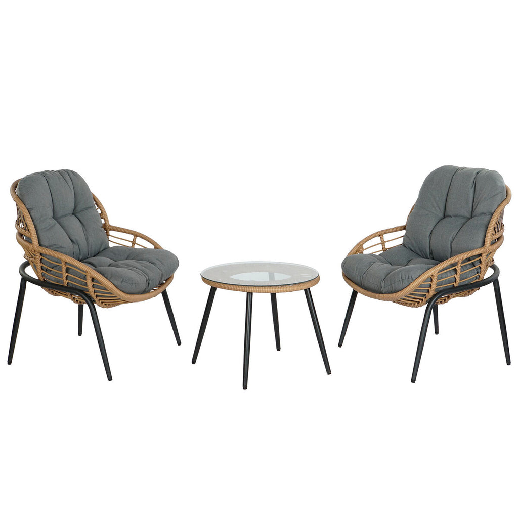 Das Tisch-Set mit 2 Sesseln von DKD Home Decor bringt modernes Design und Komfort in deinen Garten, Balkon oder deine Terrasse! 🌿 Die Kombination aus grauem Metall, Kristall und synthetischem Rattan sorgt für eine elegante und gleichzeitig praktische Lösung für gemütliche Stunden im Freien. 🌞