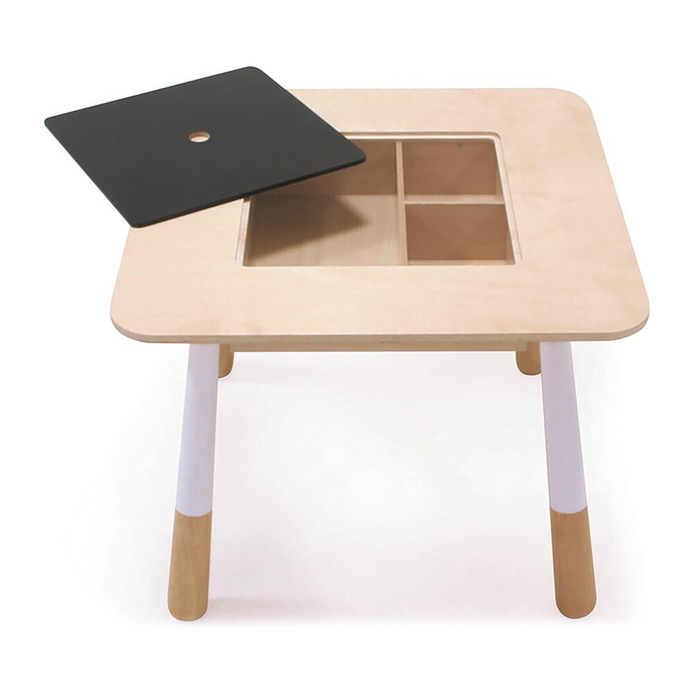 Der Tisch Wald ist ein funktionaler und stilvoller Holztisch, der nicht nur durch sein Design, sondern auch durch seine praktischen Funktionen überzeugt. Mit einer versteckten Aufbewahrungsbox unter der Kreidetafel in der Mitte bietet dieser Tisch ausreichend Platz für Stifte, Notizen und anderes Material. Ideal für kreative Arbeiten, das Home Office oder für den Einsatz im Kinderzimmer.