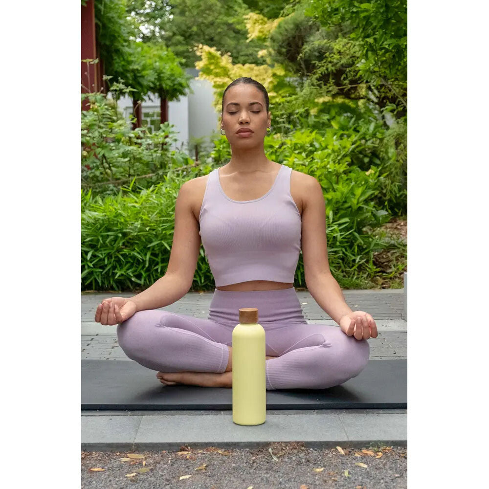 - Stilvolles Design: Das moderne Gelb und der Akazienholz-Deckel machen die Flasche zu einem eleganten Begleiter.