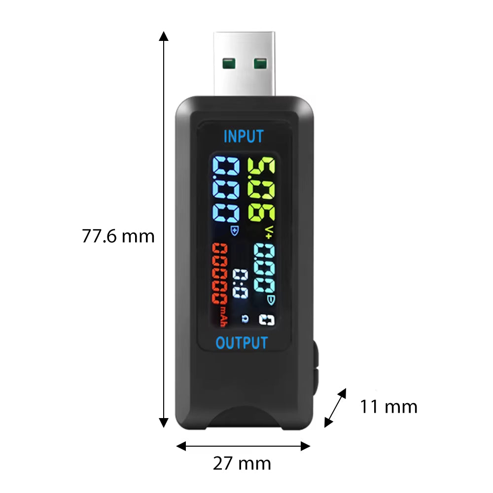 Der USB Digital Power Tester ist das ideale Werkzeug, um die Leistung Ihrer USB Geräte genau zu überwachen. USB Modell. Bereich DC 4.5 bis 36 Volt, 0-5/0-8 A, 0-99999 mAh, 0-99999 mWh, 0-150 W, 1-999,9 Ω, Temp. 0-80 °C. Messzeit 999 Std. Anzeige: IPS Digital LCD Bildschirm. Selbstverbrauchstrom ca. 0.02 A, Betriebstemperatur: -10 bis 60°C.