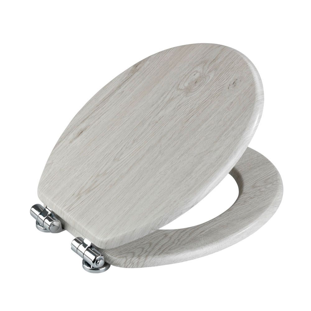 Der Wenko WC-Sitz Eiche Grau vereint natürliche Eleganz mit hoher Funktionalität. Die hochwertige MDF-Konstruktion mit schützender Folierung sorgt für eine langlebige und feuchtigkeitsresistente Oberfläche, die sich leicht reinigen lässt.