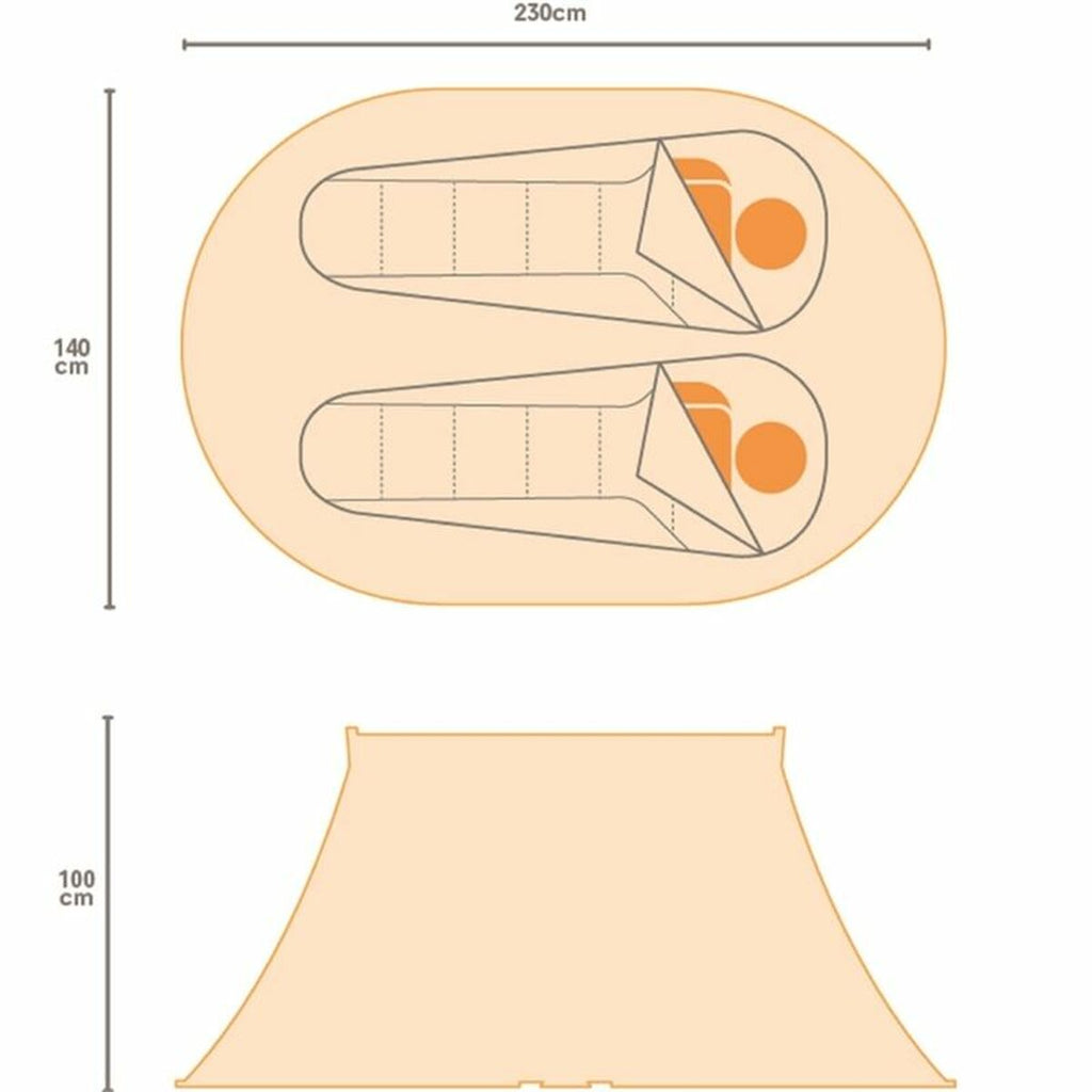 Das schnell aufstellbare Pop-Up-System ermöglicht einen Aufbau in Sekundenschnelle, ohne komplizierte Montage. Einfach auspacken, entfalten – und das Zelt steht! Mit Platz für 2 Personen bietet es eine komfortable Unterkunft für ein Wochenende voller Spaß und Outdoor-Erlebnisse.